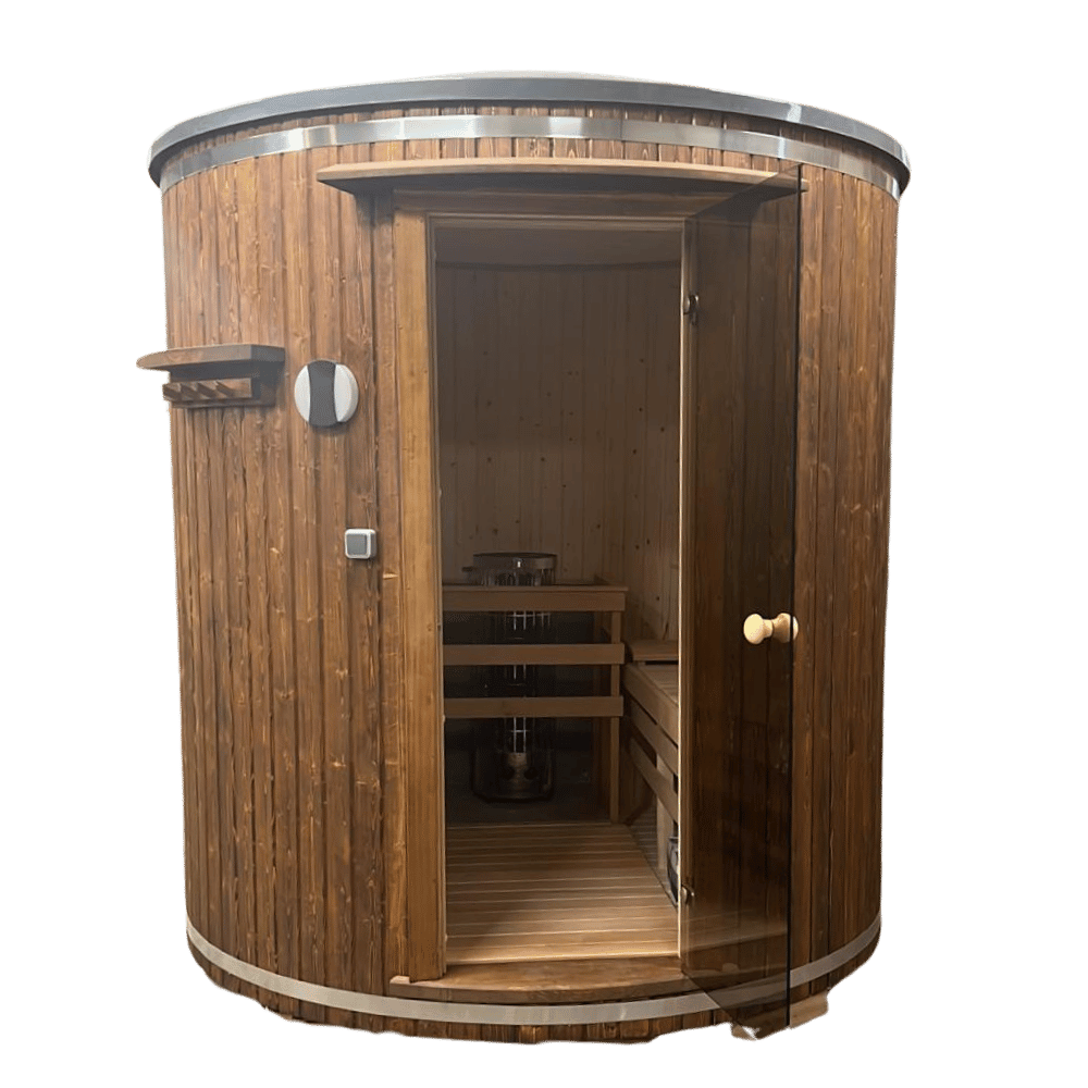 Sauna okrągła pionowa to innowacyjna konstrukcja, łącząca kompaktowy rozmiar z optymalnym wykorzystaniem przestrzeni. Dzięki pionowej budowie ciepło jest efektywnie rozprowadzane, a wnętrze nagrzewa się szybciej niż w tradycyjnych saunach. Idealne rozwiązanie dla osób ceniących minimalistyczny design i funkcjonalność. Możliwość wykonania sauny z drewna świerkowego, thermo drewna, modrzewia lub cedru, zapewniając trwałość i wyjątkową estetykę.